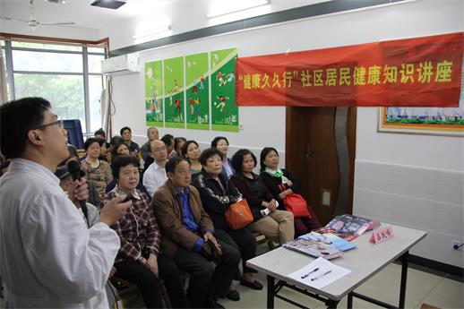 2014年5月14日,在曹家渡街道均泰社区开展“健康久久行”健康讲座第四讲“胃肠疾病预防和保健”。